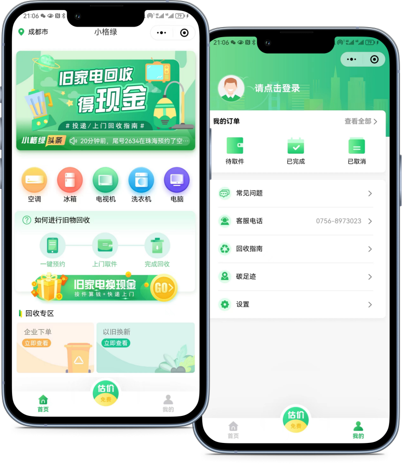 小綠格是一款包含APP、網站與小程序等多端,同時涵蓋用戶、回收師傅、物流司機、回收站、廠家等多角色的家電回收平臺,實現用戶發單、回收員接單、司機配送、回收站接收、廠家處理的閉合家電回收處理流程。